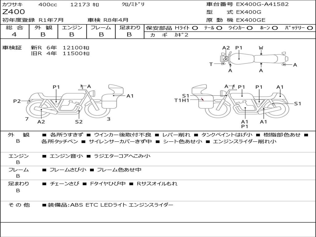 | Номер рамы / VIN | EX400G-A41582 |