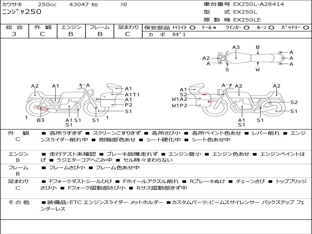 | Номер рамы / VIN | EX250L-A28414 |