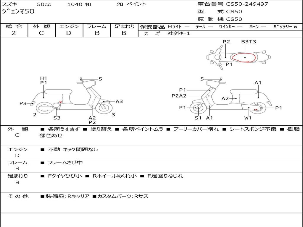 | Номер рамы / VIN | CS50-249497 |