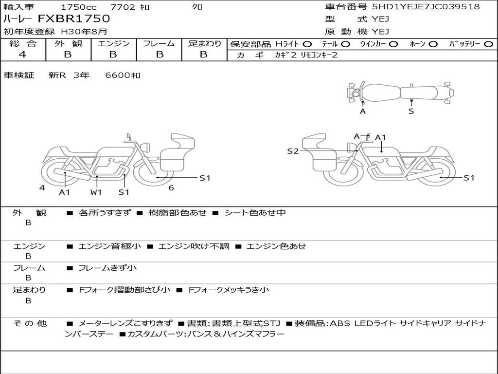 | Номер рамы / VIN | 5HD1YEJE7JC039518 |
