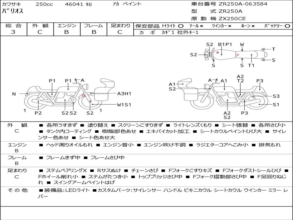 | Номер рамы / VIN | ZR250A-063584 |