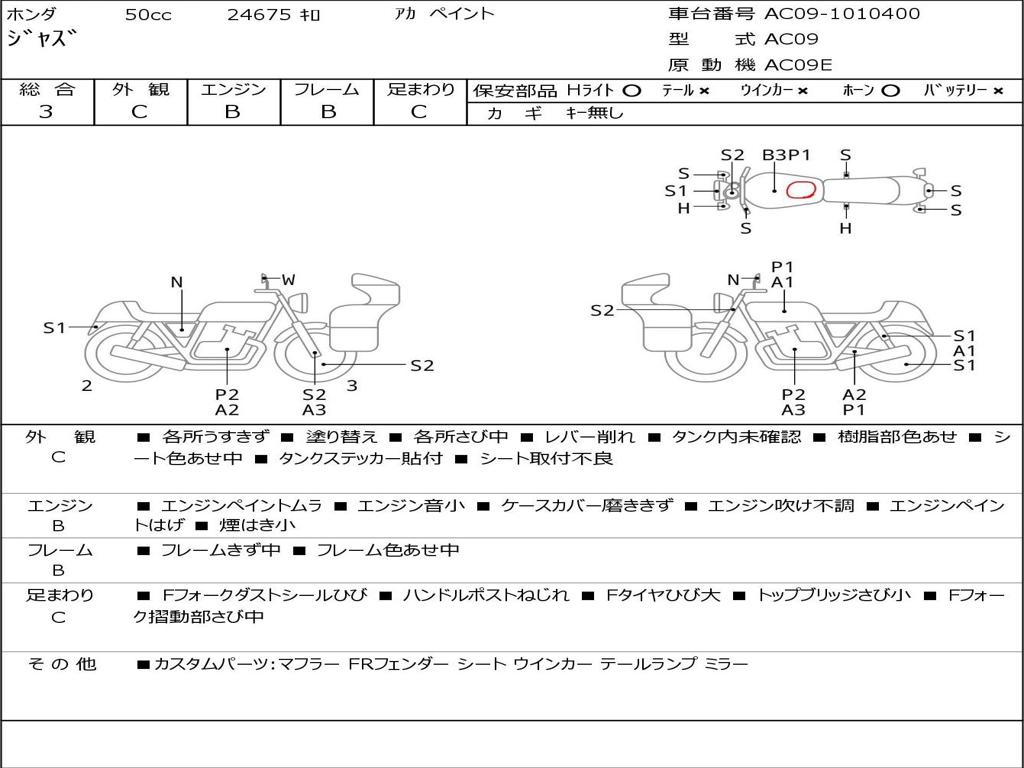 | Номер рамы / VIN | AC09-1010400 |