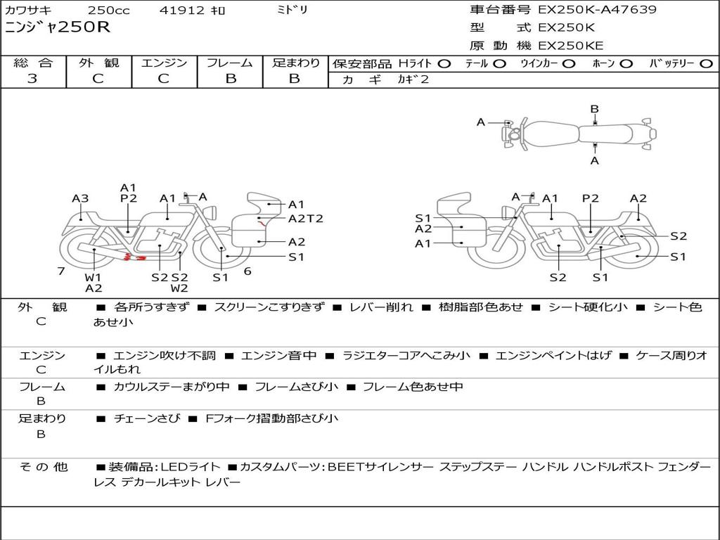 | Номер рамы / VIN | EX250K-A47639 |