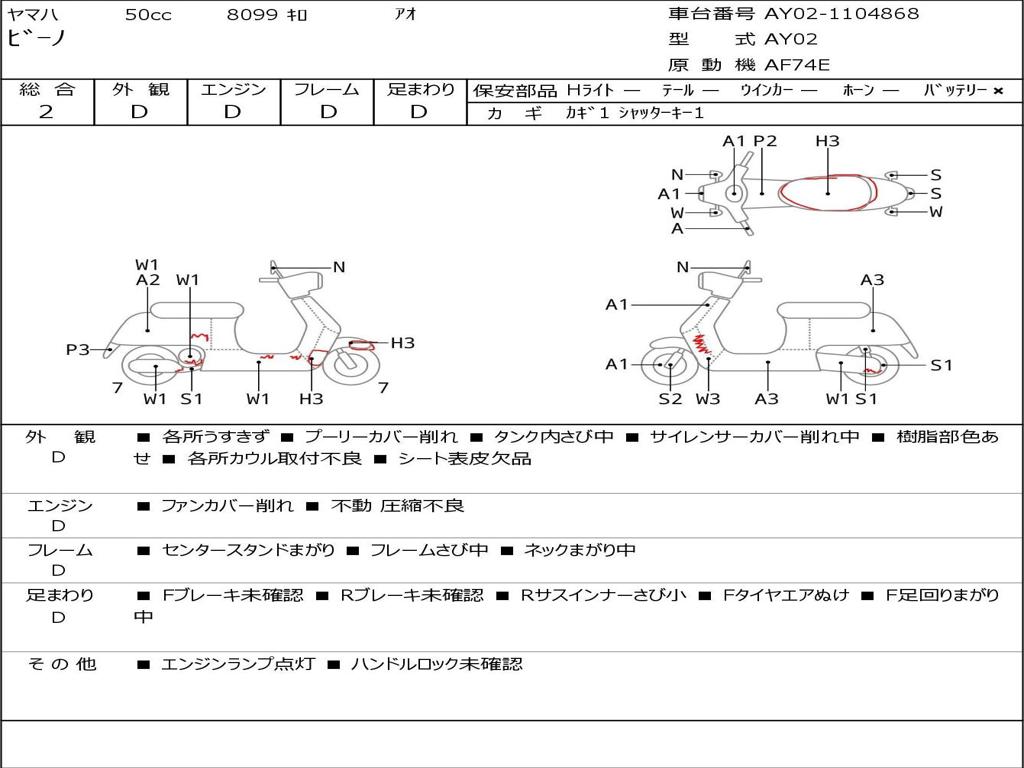 | Номер рамы / VIN | AY02-1104868 |