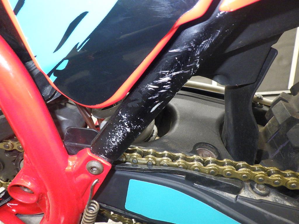 | внешняя часть вилки | царапины <много>, потек масла |