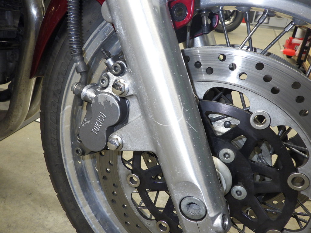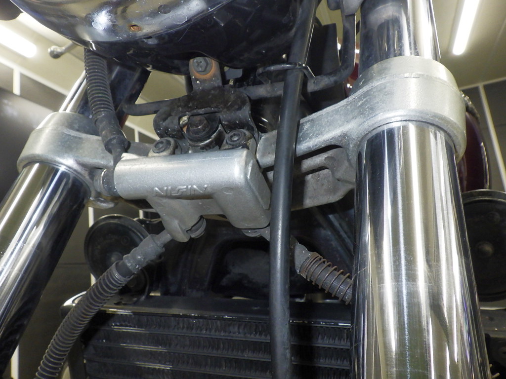| внешняя часть вилки | царапины <много>, следы коррозии, потек масла |