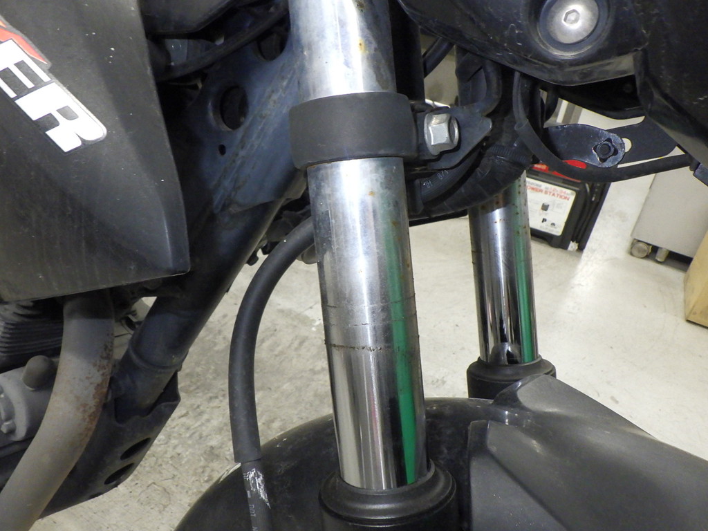 | внешняя часть вилки | потек масла |