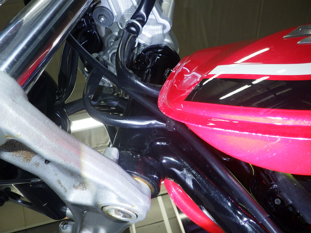 | внешняя часть вилки | следы коррозии <много>, неисправен сальник, перекрашено, неравномерность цвета ЛКП |