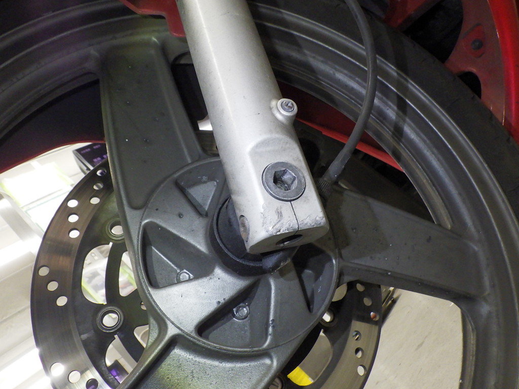 | внешняя часть вилки | царапины <много>, следы коррозии, потек масла, неисправен сальник |