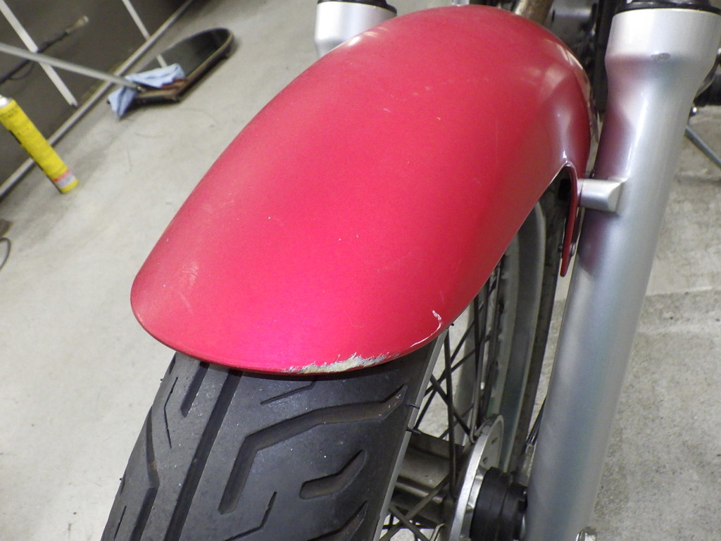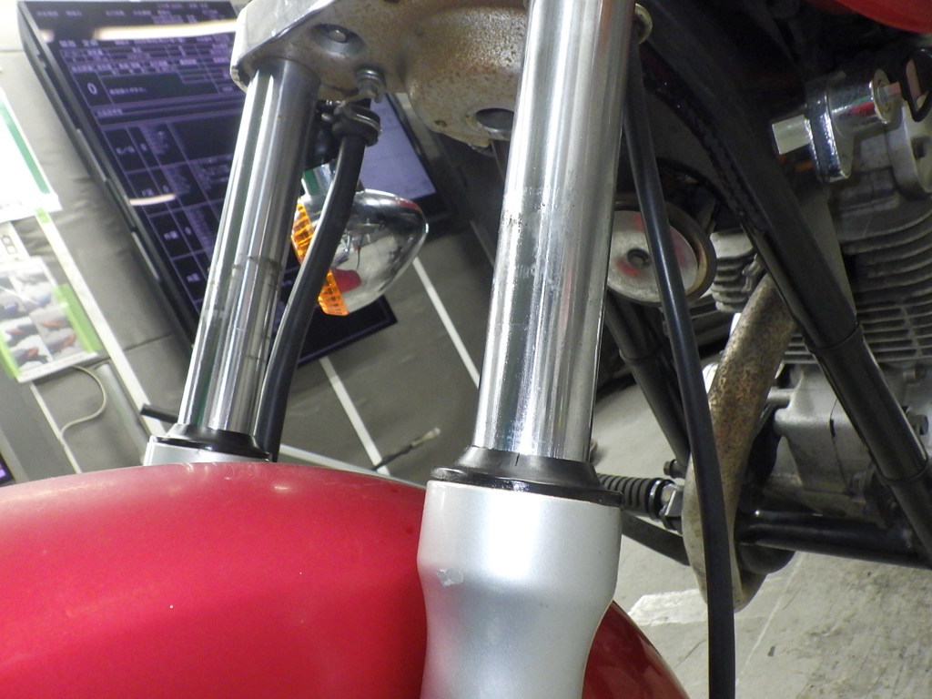 | внешняя часть вилки | царапины, потек масла <много> |
