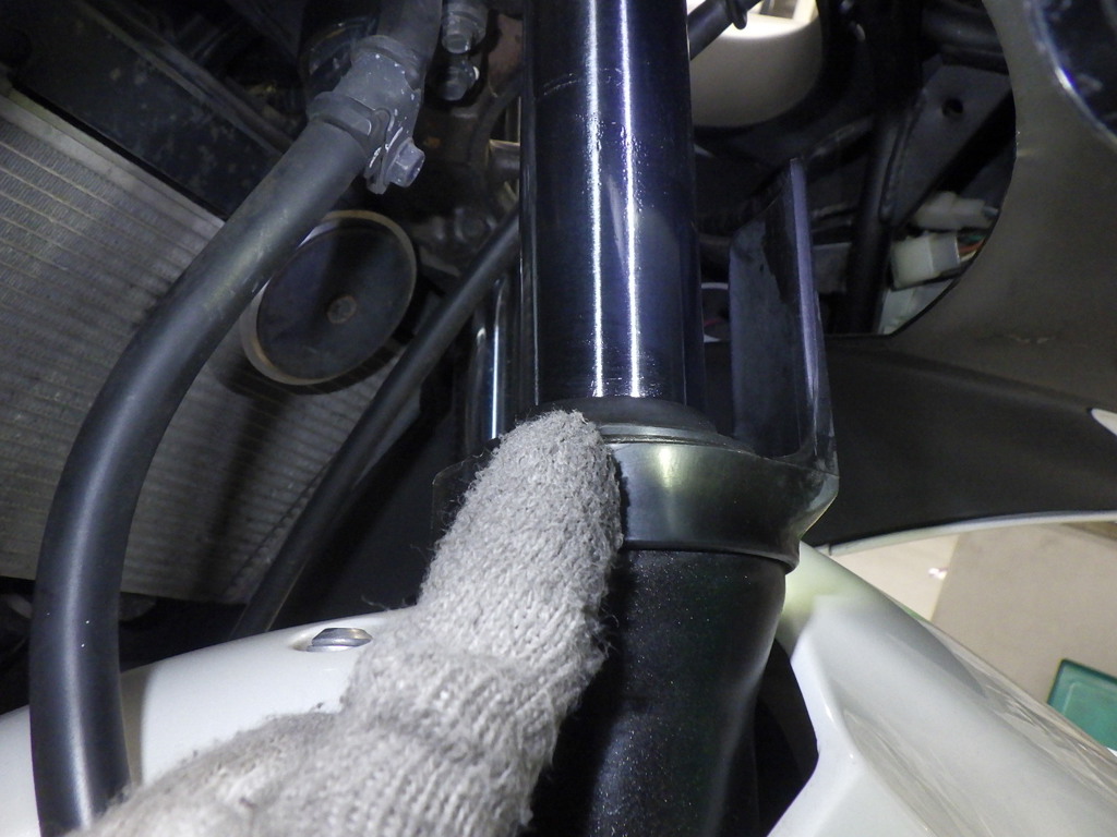 | внешняя часть вилки | потек масла <много>, ухудшение |