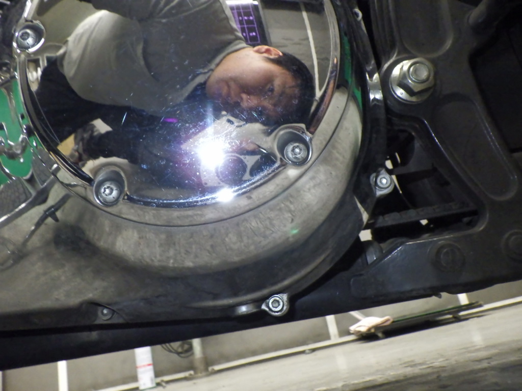 | потек масла | снизу <немного> |