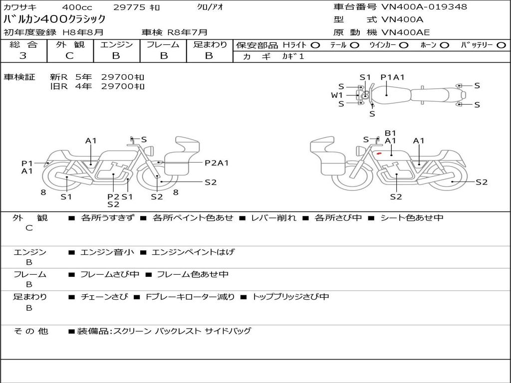 | Номер рамы / VIN | VN400A-019348 |