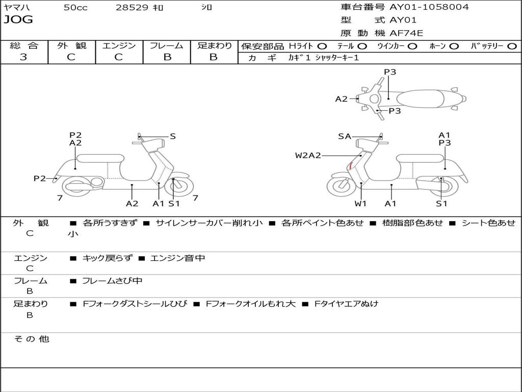 | Номер рамы / VIN | AY01-1058004 |