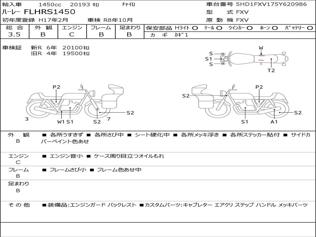| Номер рамы / VIN | 5HD1FXV175Y620986 |