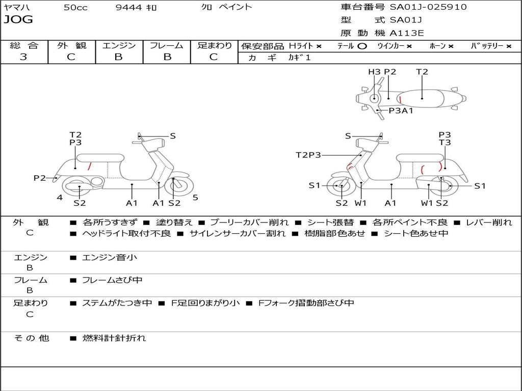 | Номер рамы / VIN | SA01J-025910 |