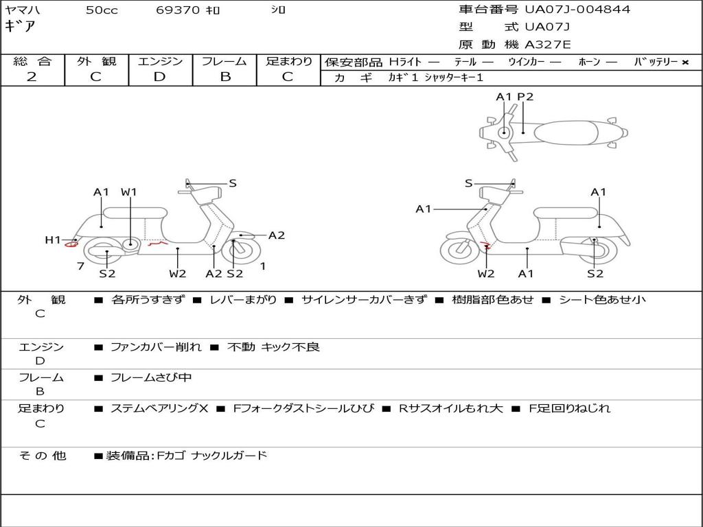 | Номер рамы / VIN | UA07J-004844 |