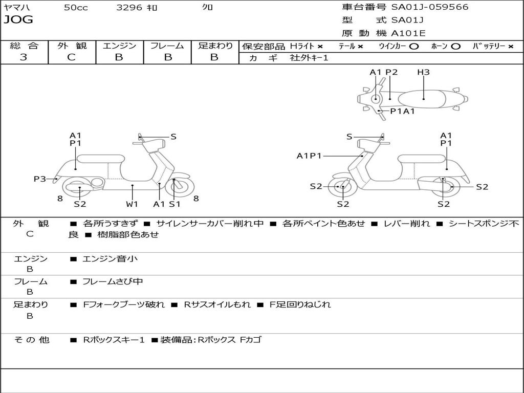 | Номер рамы / VIN | SA01J-059566 |