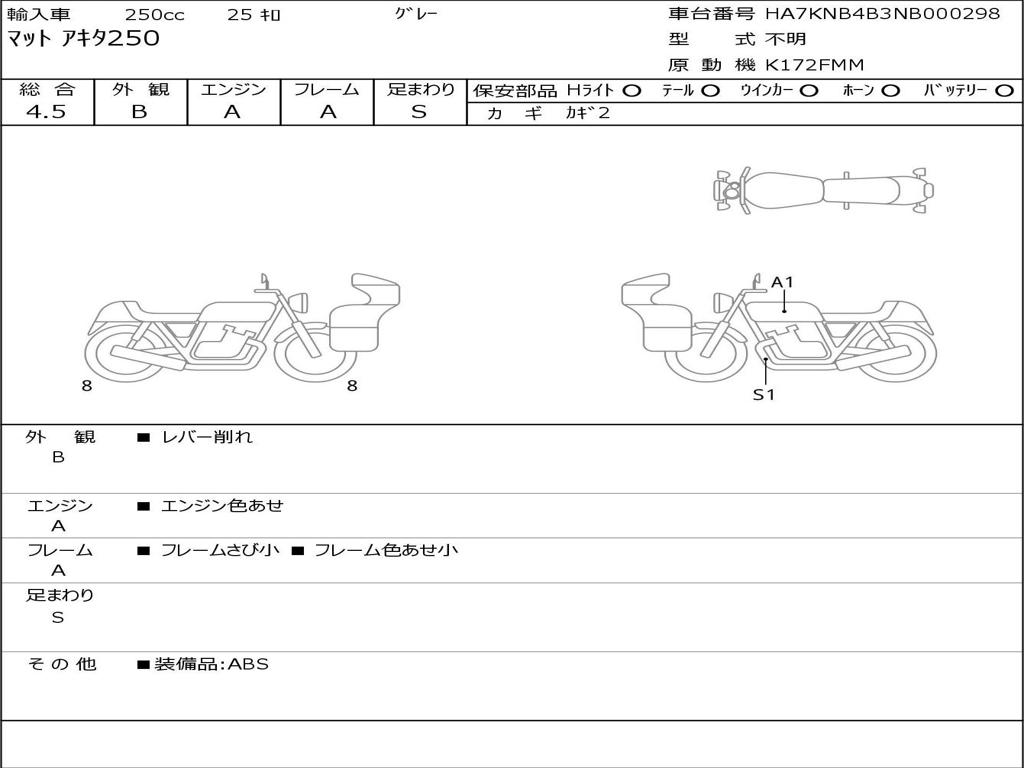 | Номер рамы / VIN | HA7KNB4B3NB000298 |