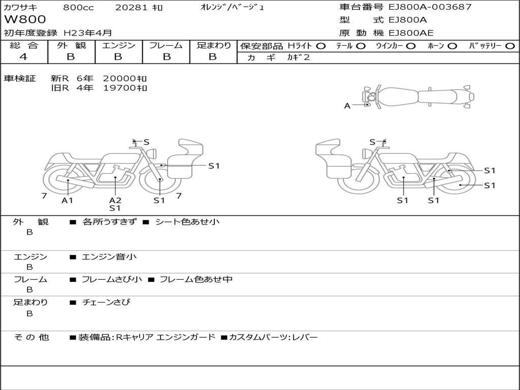 | Номер рамы / VIN | EJ800A-003687 |