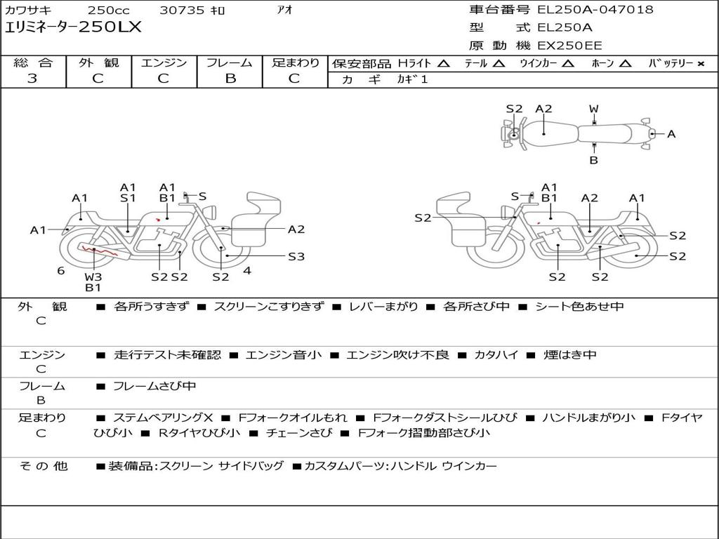 | Номер рамы / VIN | EL250A-047018 |