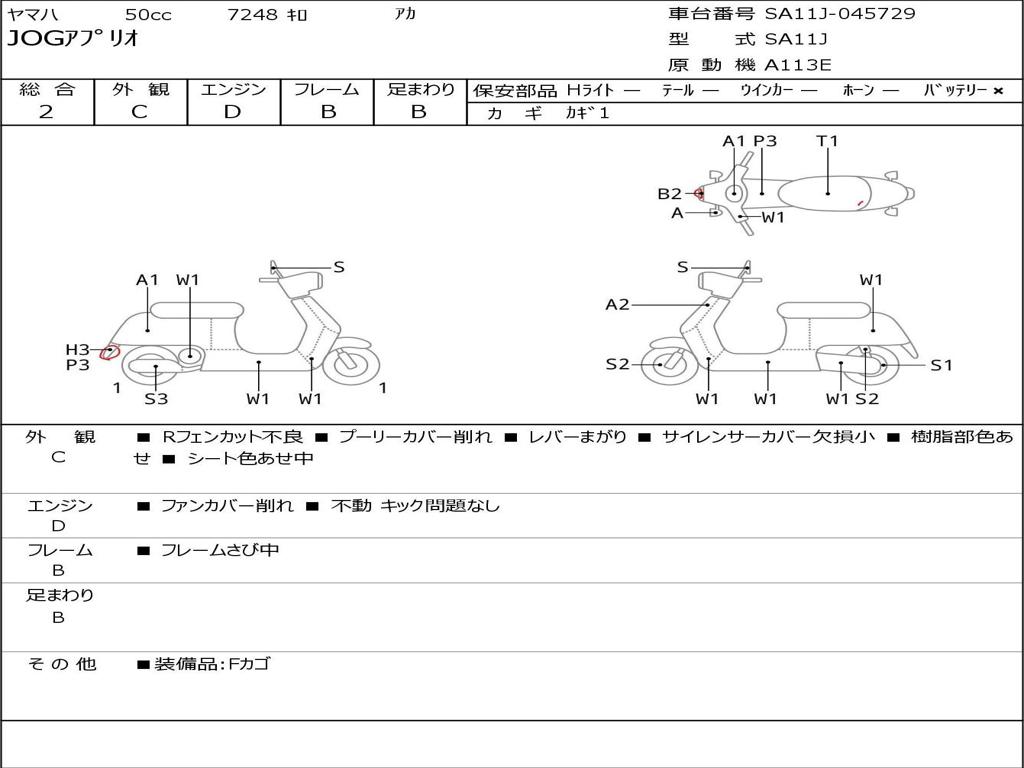 | Номер рамы / VIN | SA11J-045729 |
