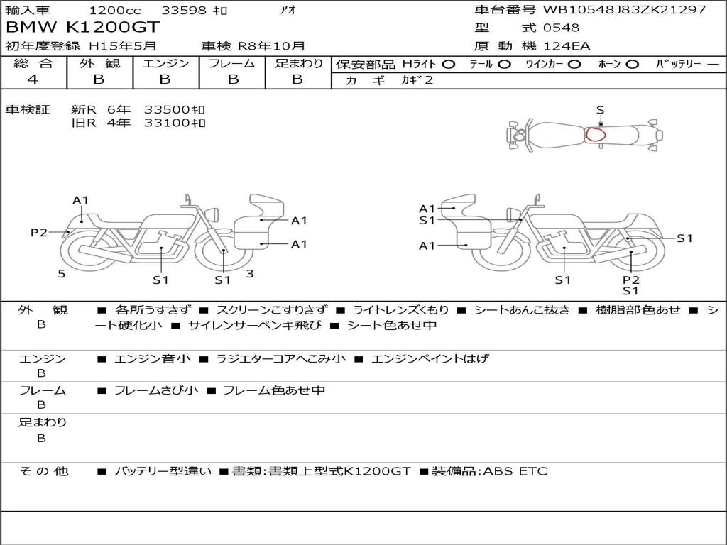 | Номер рамы / VIN | WB10548J83ZK21297 |