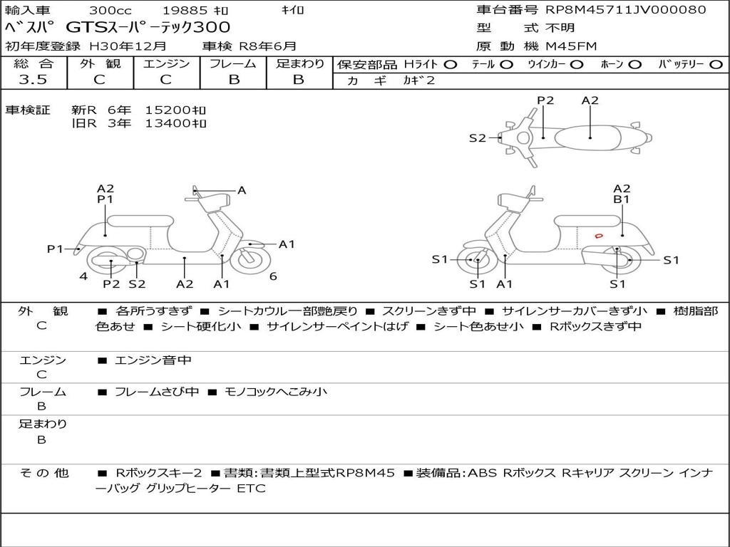 | Номер рамы / VIN | RP8M45711JV000080 |