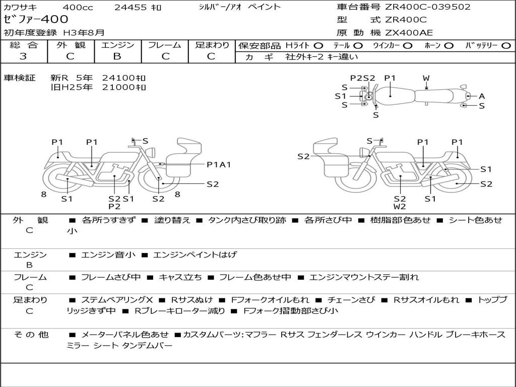 | Номер рамы / VIN | ZR400C-039502 |