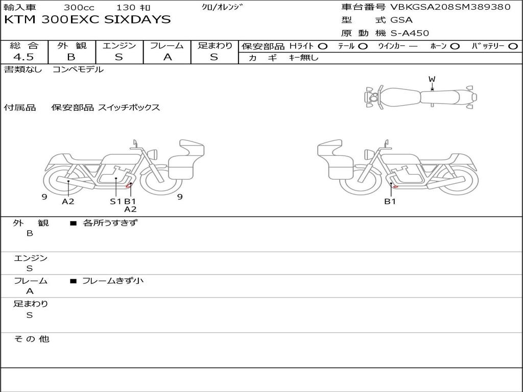 | Номер рамы / VIN | VBKGSA208SM389380 |