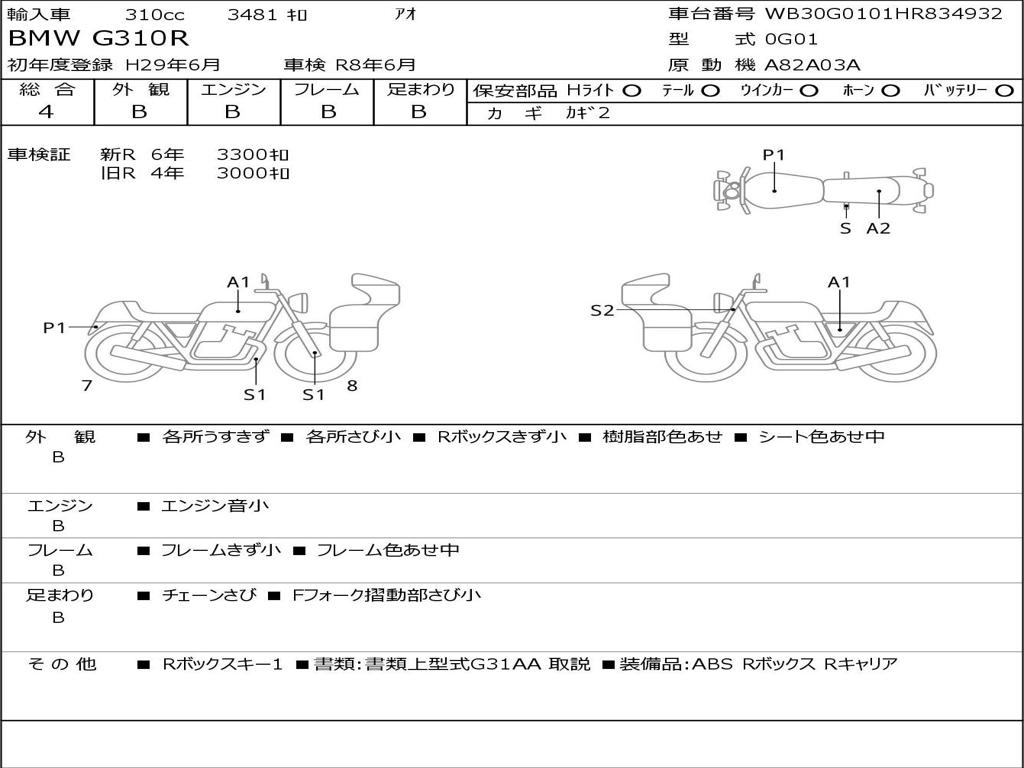 | Номер рамы / VIN | WB30G0101HR834932 |