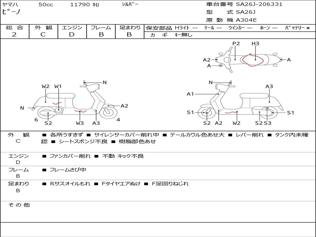 | Номер рамы / VIN | SA26J-206331 |