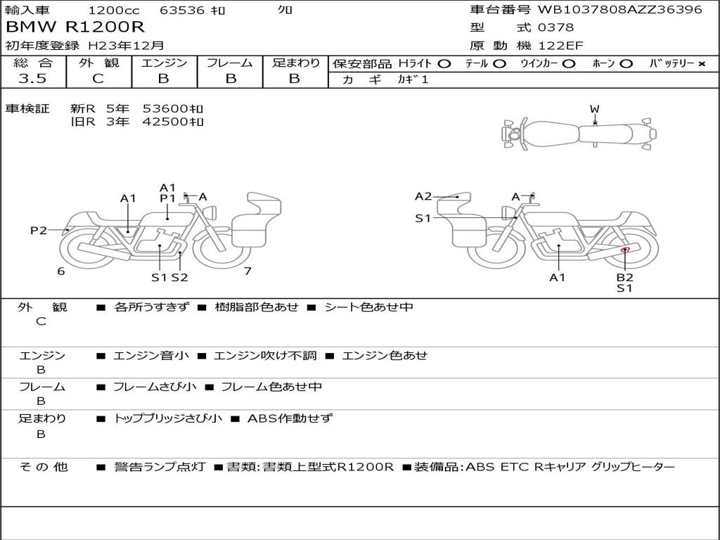 | Номер рамы / VIN | WB1037808AZZ36396 |