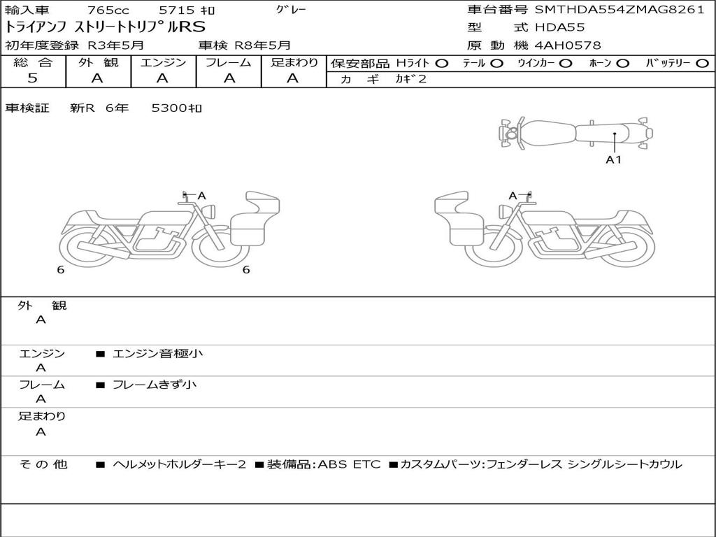 | Отметка об участии мотоцикла в авариях | Мотоцикл не участвовал в ДТП |