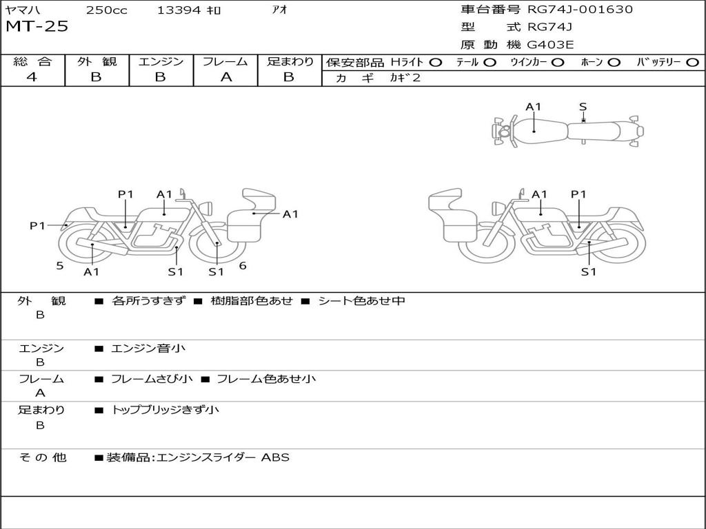 | Номер рамы / VIN | RG74J-001630 |