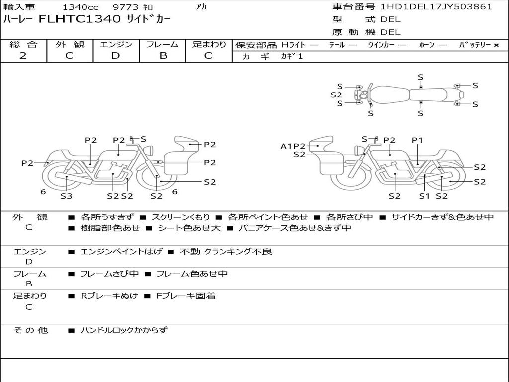 | Номер рамы / VIN | 1HD1DEL17JY503861 |