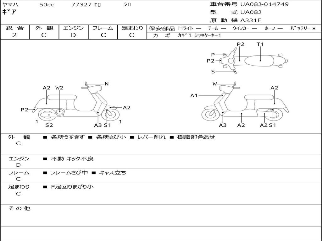 | Номер рамы / VIN | UA08J-014749 |