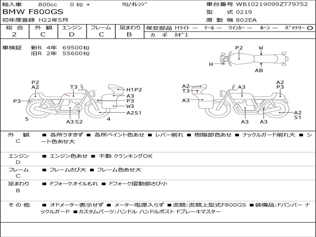 | Номер рамы / VIN | WB10219099ZT79752 |