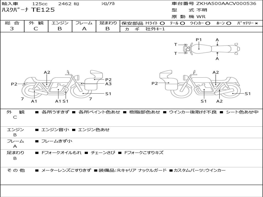 | Номер рамы / VIN | ZKHA500AACV000536 |