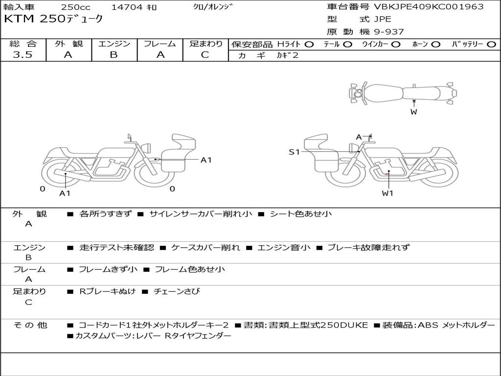 | Номер рамы / VIN | VBKJPE409KC001963 |