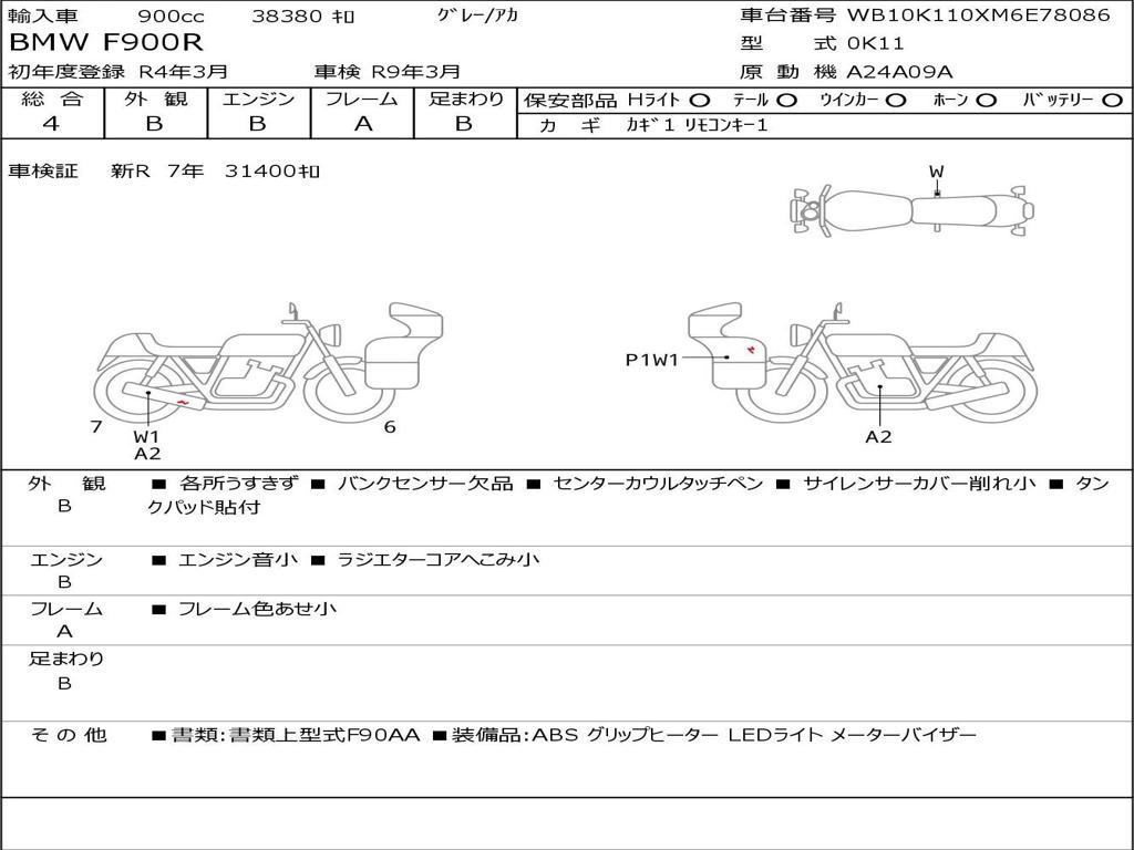 | Номер рамы / VIN | WB10K110XM6E78086 |