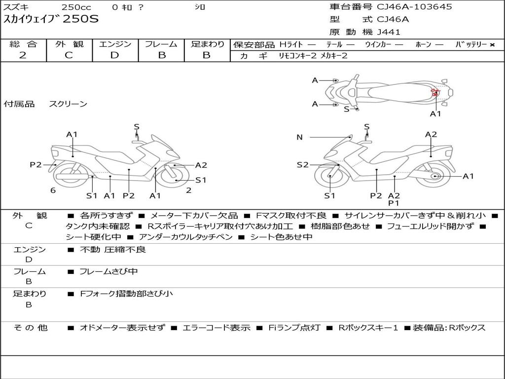 | Номер рамы / VIN | CJ46A-103645 |