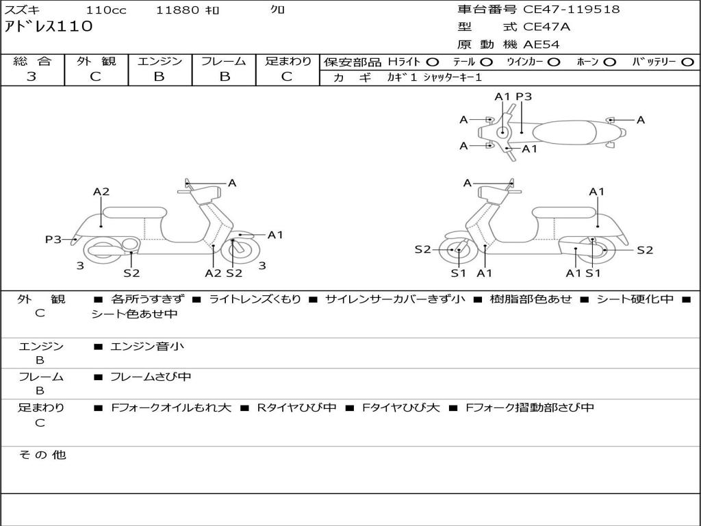 | Номер рамы / VIN | CE47-119518 |