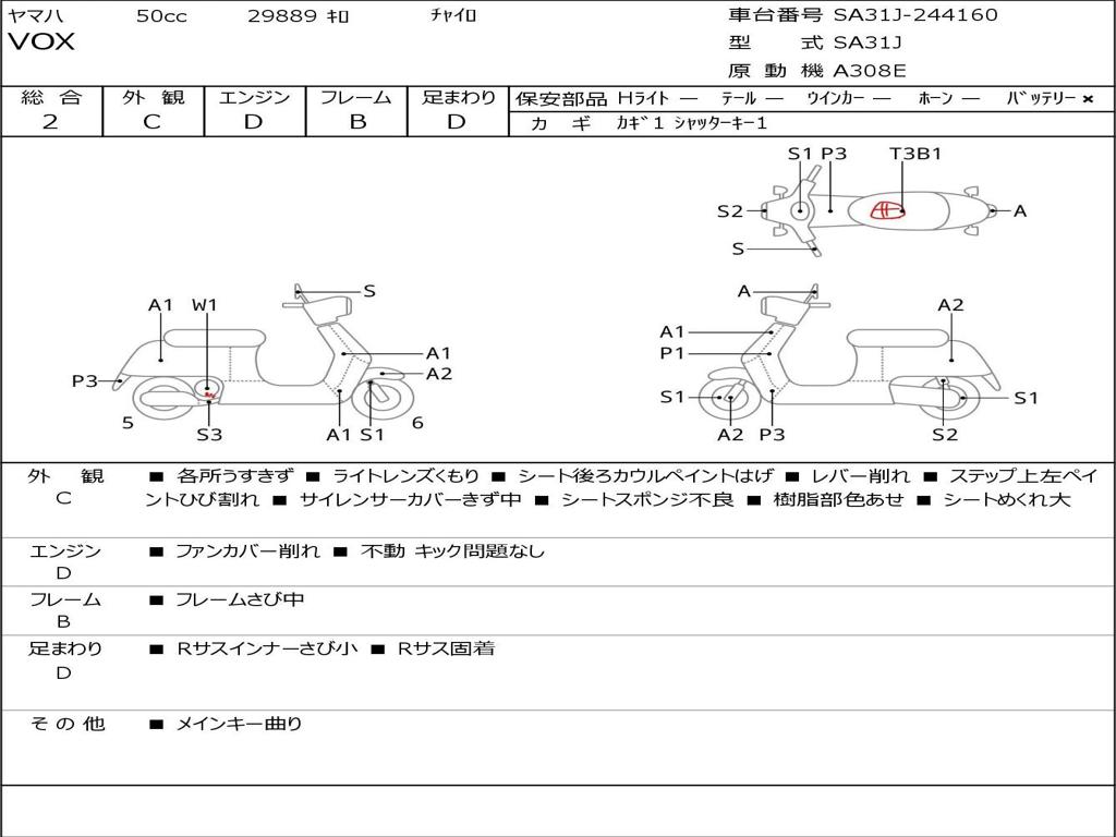 | Номер рамы / VIN | SA31J-244160 |