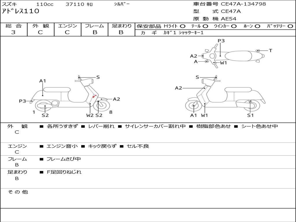 | Номер рамы / VIN | CE47A-134798 |