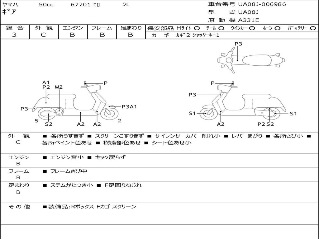 | Номер рамы / VIN | UA08J-006986 |