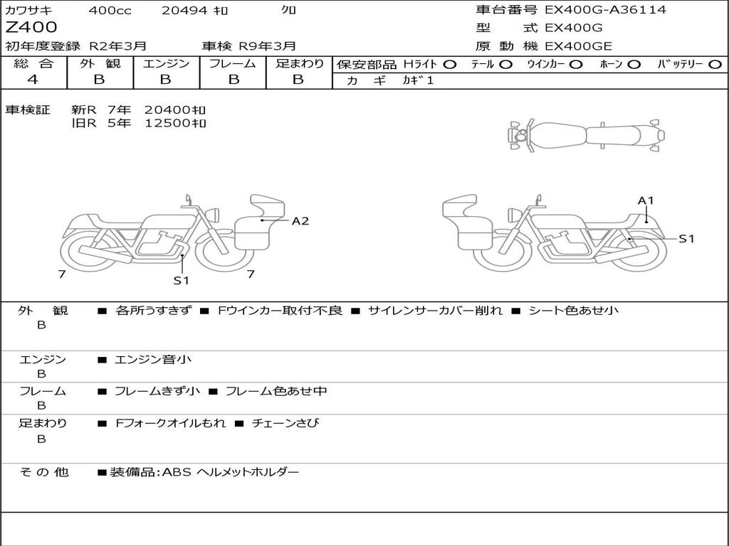 | Номер рамы / VIN | EX400G-A36114 |