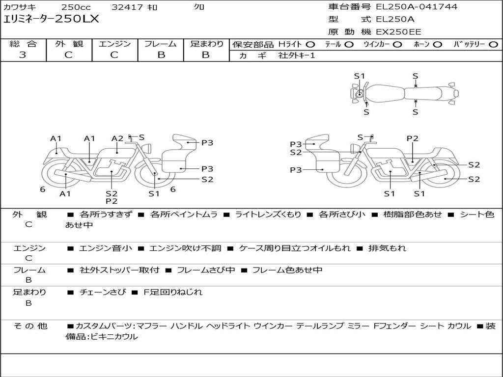 | Номер рамы / VIN | EL250A-041744 |