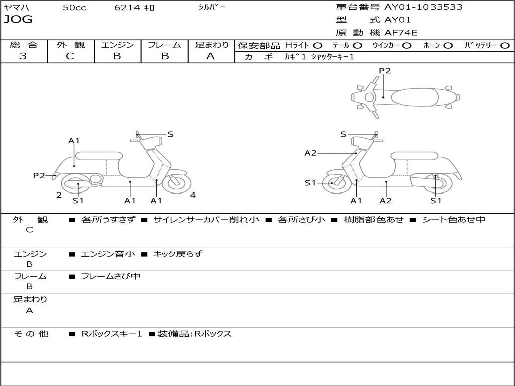 | Номер рамы / VIN | AY01-1033533 |