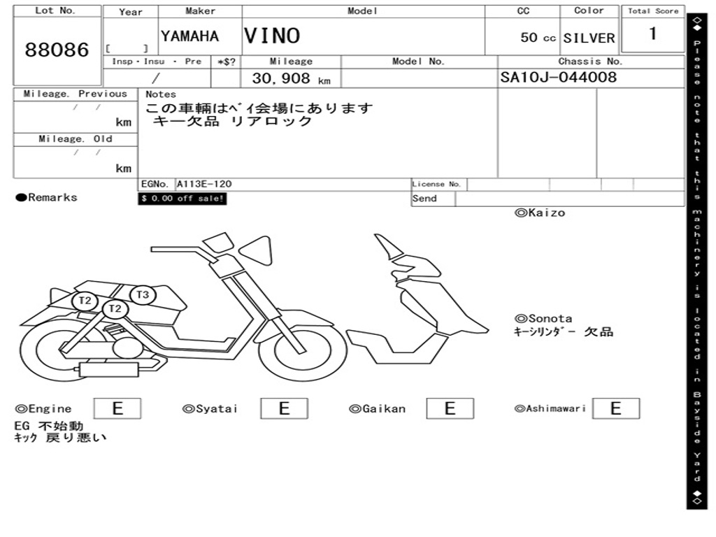 | Номер рамы / VIN | SA10J-044008 |